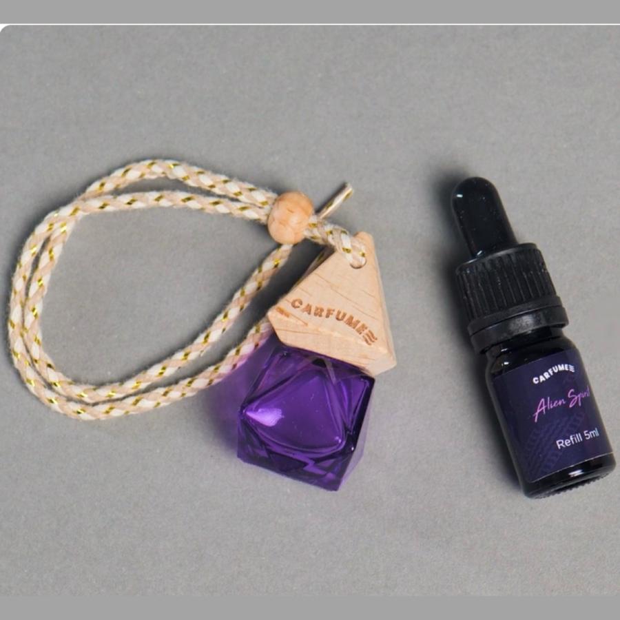 Encased in a hand-painted clear purple glass bottle with an intricate carved wooden top, Alien Spirit doesn’t just refresh your car – it transforms every journey into a magical escape. Simply tip, awaken the fragrance, and let your drive be filled with radiant, mood-lifting energy.