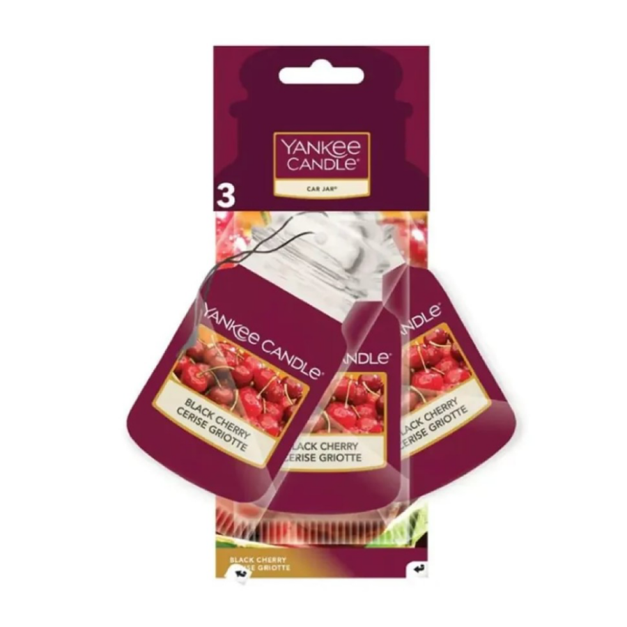 Experience the luxury of Yankee Candle® on-the-go with these Car Jar hanging air freshener 3packs. Simply hang from your rear view mirror and feel the essence of Yankee Candle® fill your space. Enjoy the absolutely delicious sweetness of rich, ripe black cherries.