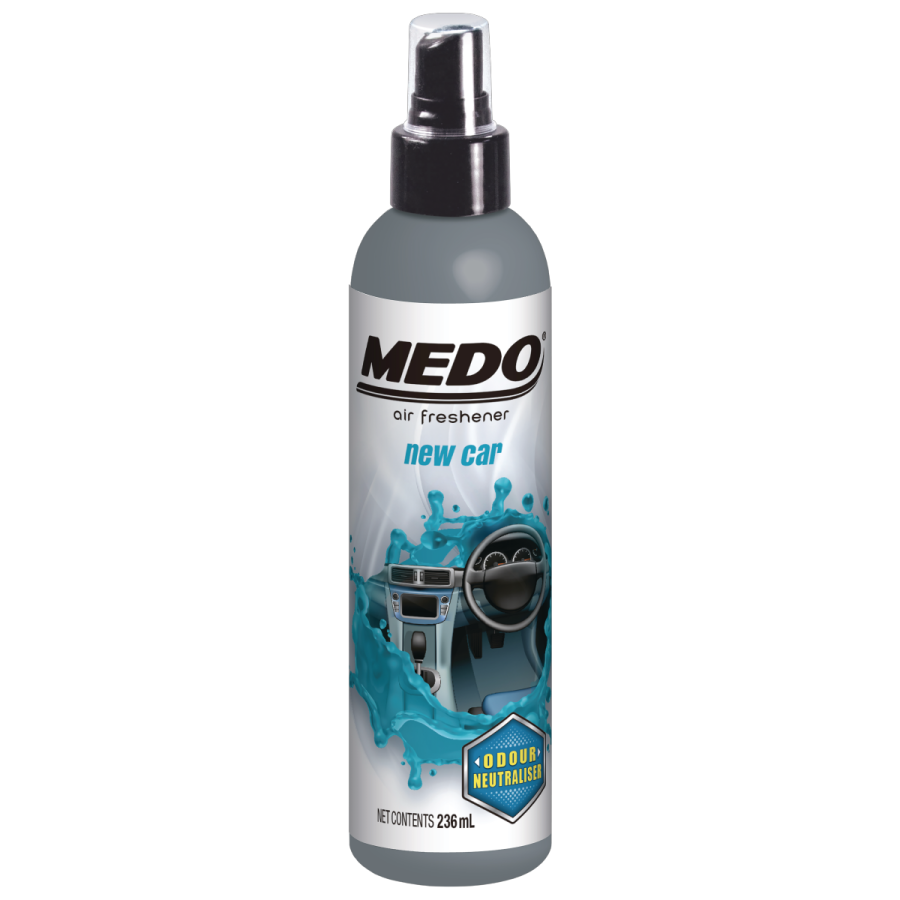 MEDO Pump Spray Car Air Freshener – Long-Lasting Odour Neutraliser Eliminate unwanted odours quickly and effectively with the MEDO Pump Spray Car Air Freshener. Designed to neutralise everyday smells, this powerful formula replaces unpleasant odours with a clean, long-lasting fragrance whenever you need it. Just a few sprays are enough to freshen your surroundings for hours. Adjust the intensity to your preference — use lightly for a subtle scent or more generously for a stronger fragrance. A refreshing burst of MEDO is always just one spray away. Perfect for both retail and trade customers, this versatile air freshener is suitable for multiple environments. Key Features: Instantly neutralises unpleasant odours Long-lasting, refreshing fragrance Adjustable spray intensity to suit your preference Suitable for car interiors, caravans, boats, homes, and offices Ideal for retail and trade use Available in a variety of popular scents Available Fragrances: Cherry Midnight New Car Strawberry Vanilla Coconut Keep your surroundings smelling fresh and inviting with MEDO Pump Spray Air Fresheners.